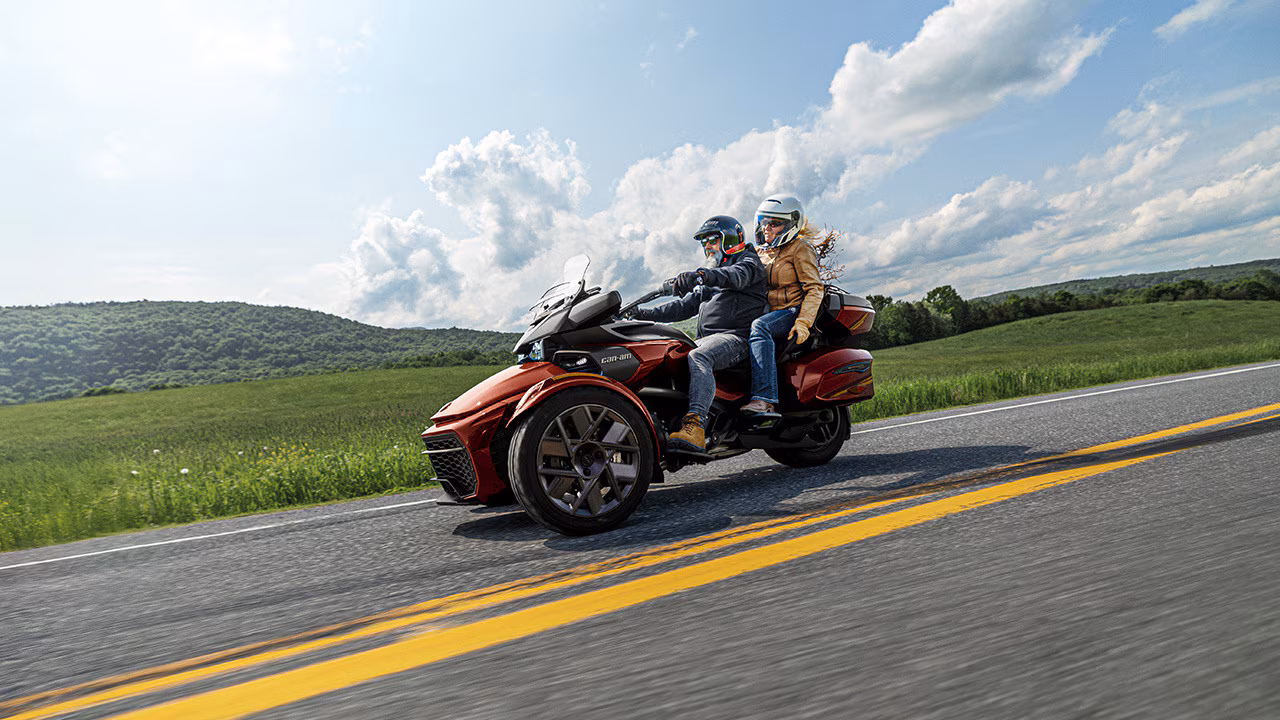 Inspiré des cruisers, le Can-Am Spyder F3 offre une position de conduite détendue, avec plusieurs options de réglage des repose-pieds et du guidon. Roulez avec style grâce au design audacieux et musclé de la famille Spyder F3.